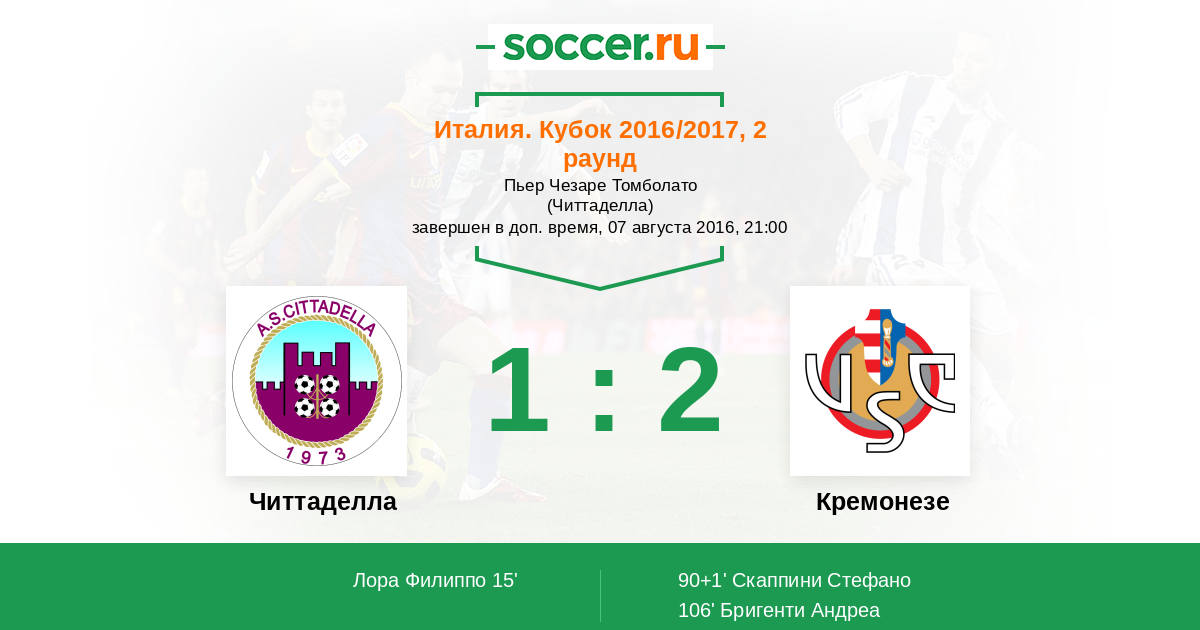 Протокол матча Читтаделла против Кремонезе