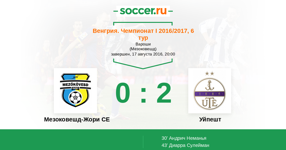 Протокол матча Мезоковешд-Жори СЕ против Уйпешт