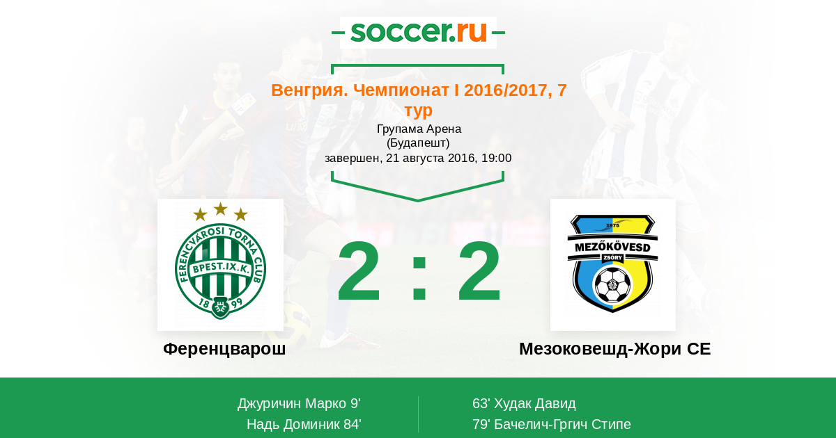 Протокол матча Ференцварош против Мезоковешд-Жори СЕ