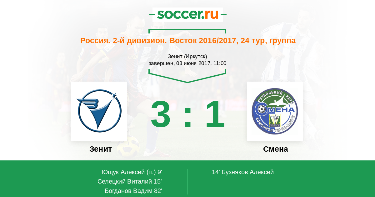 Протокол матча Зенит против Смена