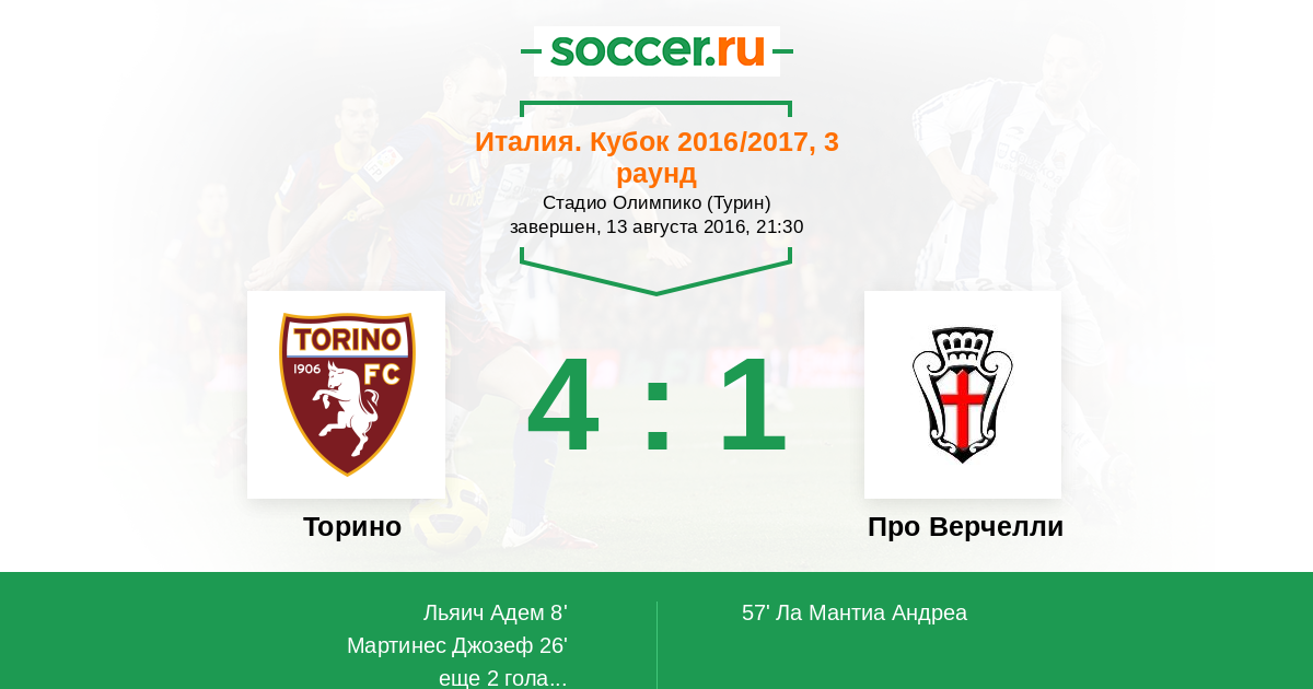 Протокол матча Торино против Про Верчелли