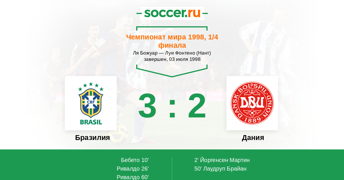 Протокол матча Бразилия против Дания