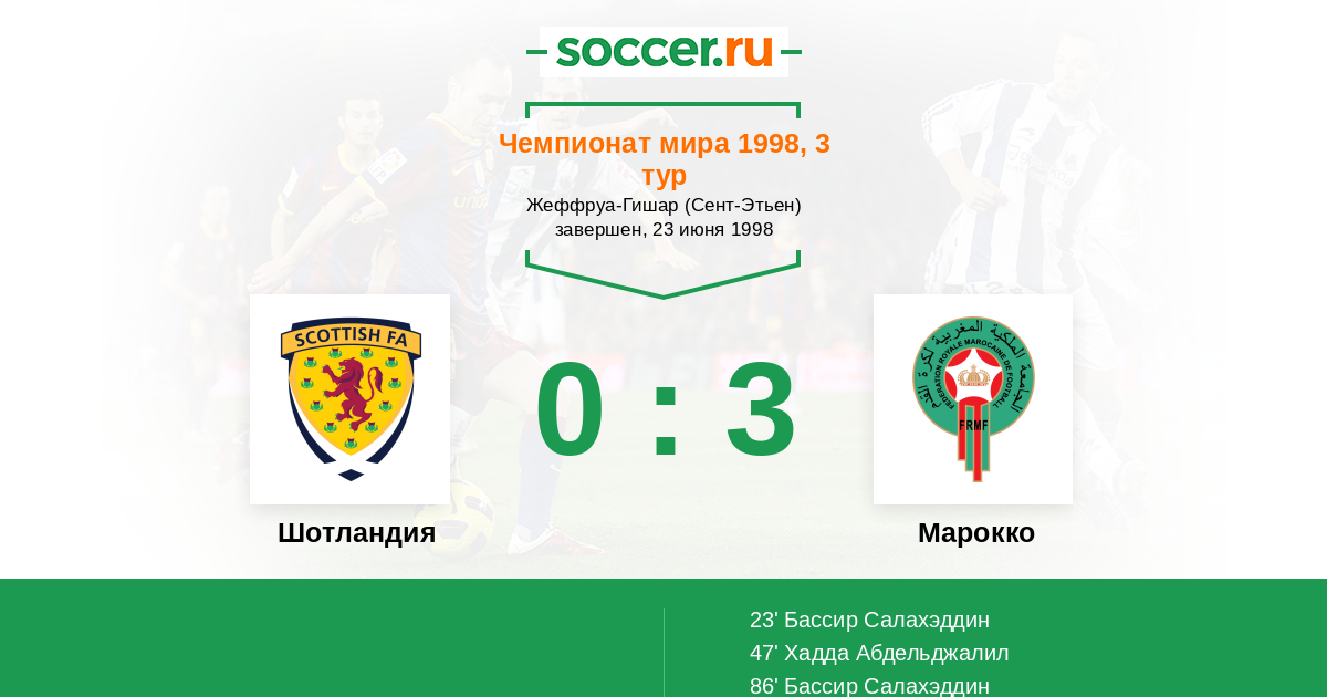 Протокол матча Шотландия против Марокко