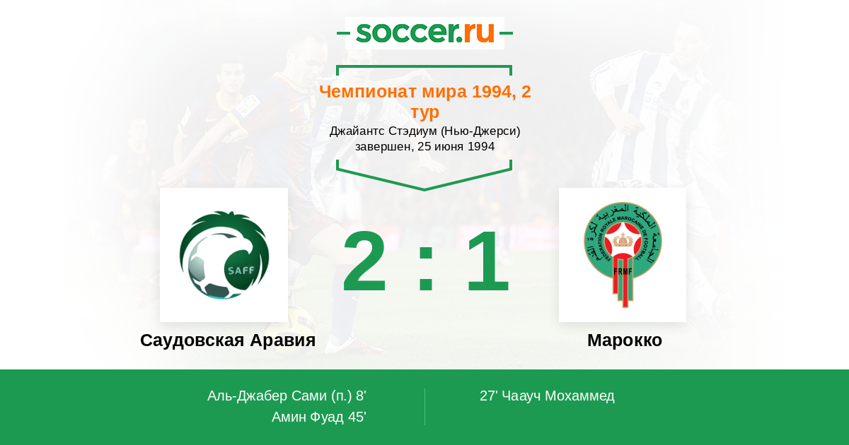 Протокол матча Саудовская Аравия против Марокко