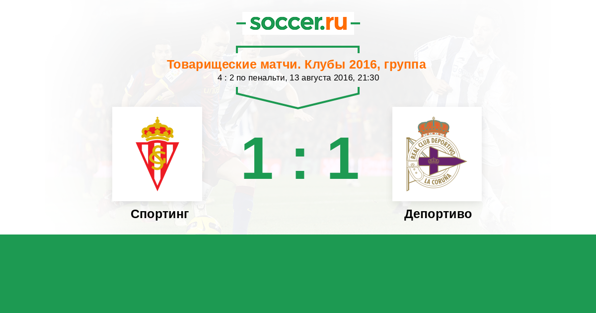 Испания. Примера 07.02.2016 Спортинг Логотип футбольный клуб Спортинг (Хихон) 1:1 Логотип футбольный клуб Депортиво (Ла-Корунья) Депортиво