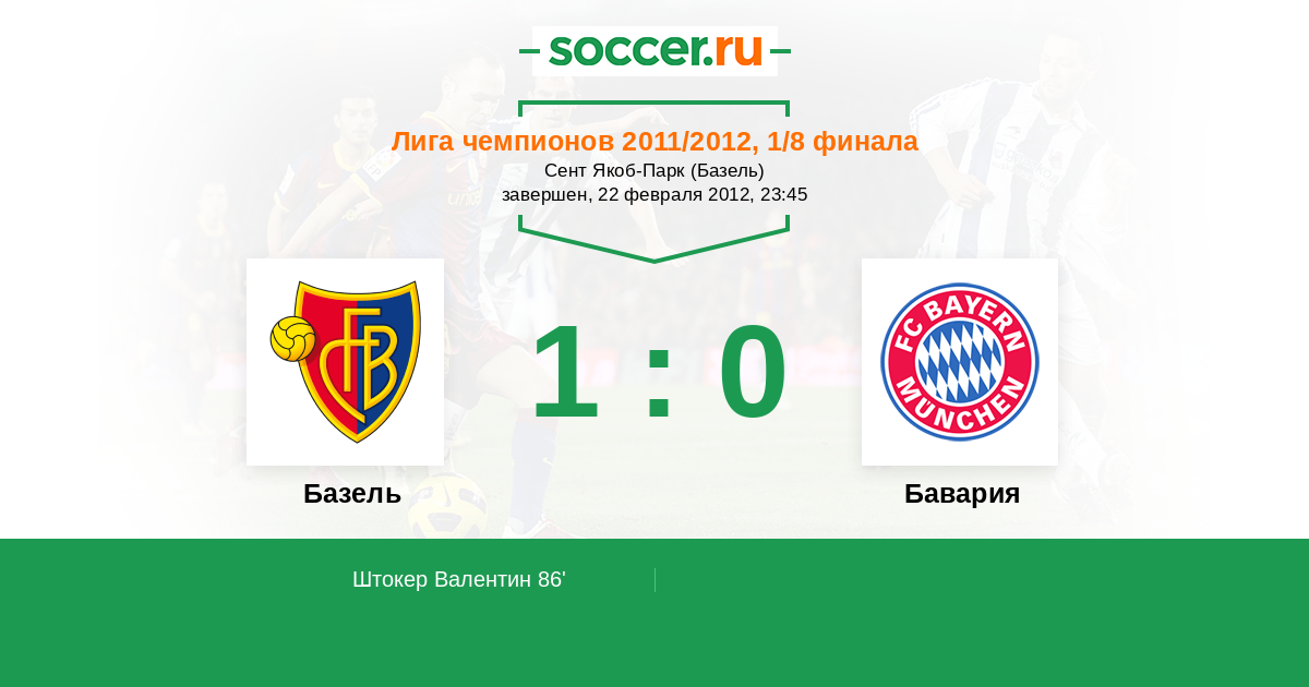 Протокол матча Базель против Бавария