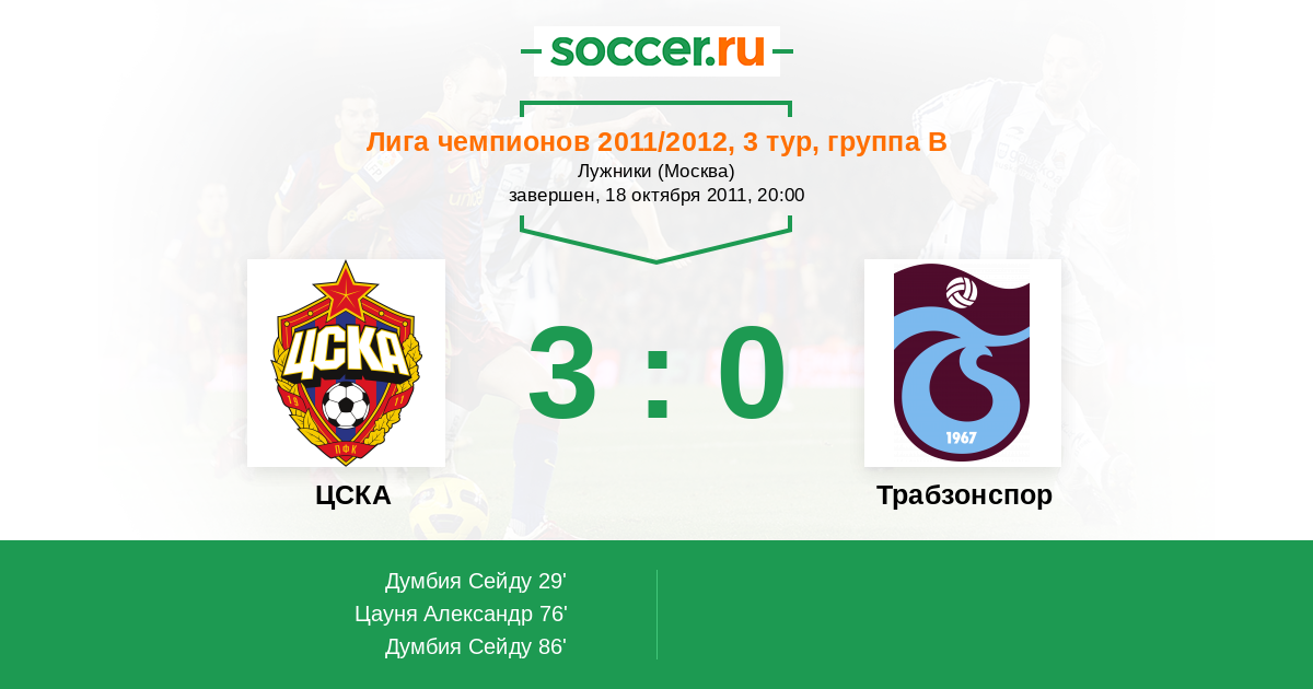 Протокол матча ЦСКА против Трабзонспор