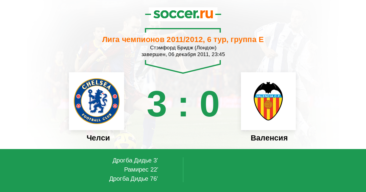 Протокол матча Челси против Валенсия