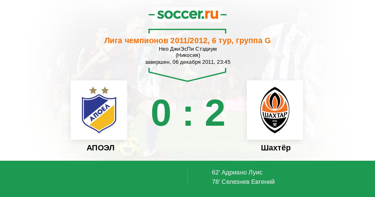Протокол матча АПОЭЛ против Шахтёр