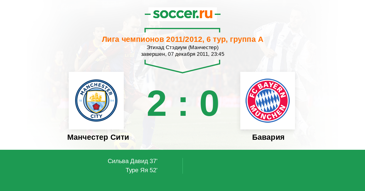 Протокол матча Манчестер Сити против Бавария