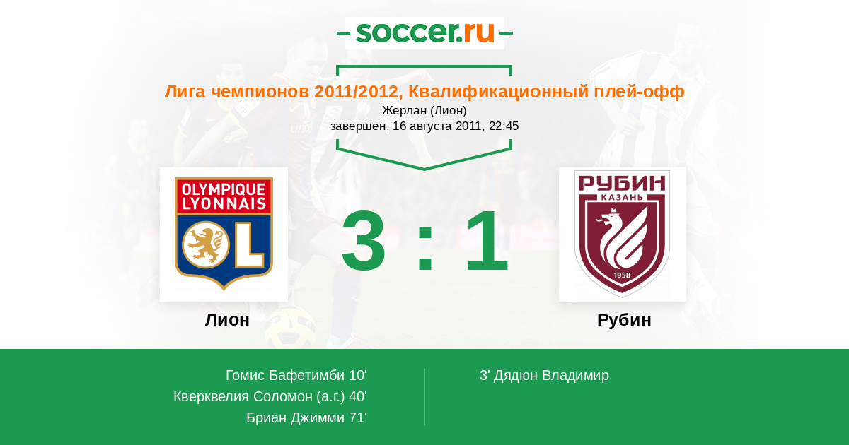Протокол матча Лион против Рубин