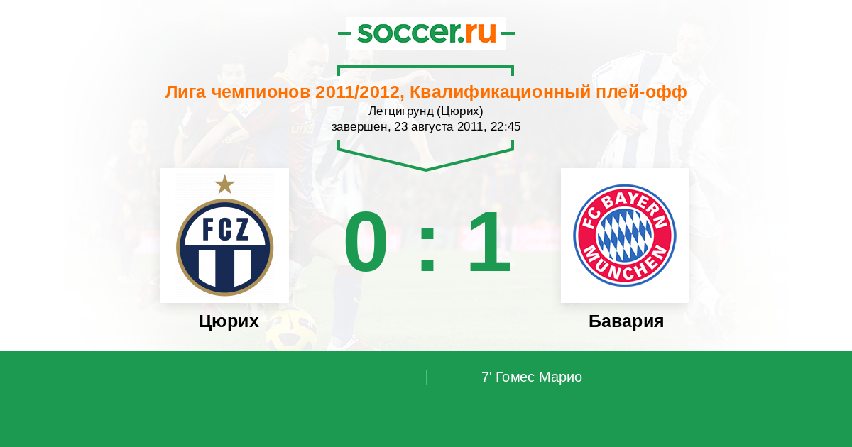 Протокол матча Цюрих против Бавария