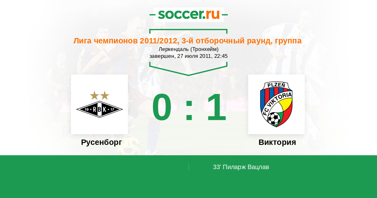 Протокол матча Русенборг против Виктория