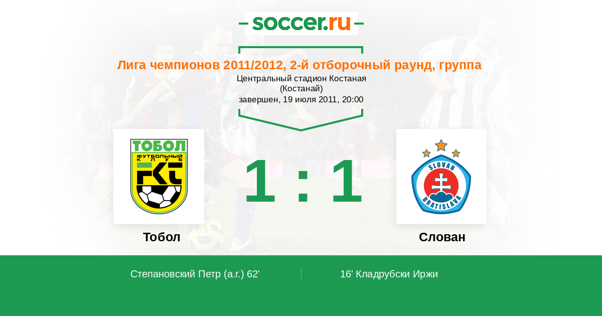 Протокол матча Тобол против Слован