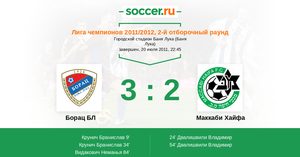 Протокол матча Борац БЛ против Маккаби Хайфа