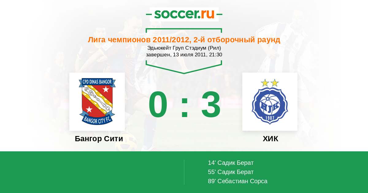 Протокол матча Бангор Сити против ХИК