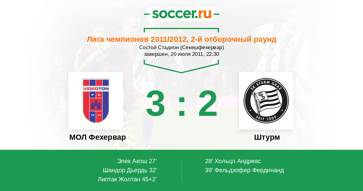 Протокол матча Видеотон против Штурм