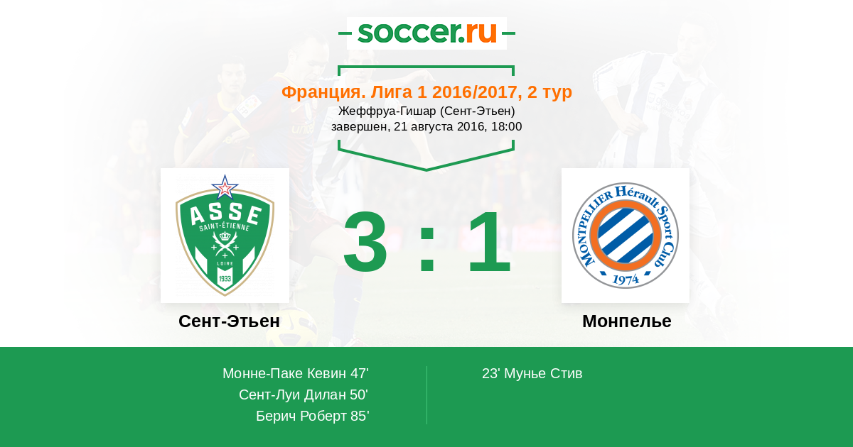 Протокол матча Сент-Этьен против Монпелье