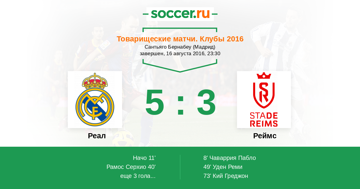 40' (2:1) Рамос Серхио (4) (Кроос Тони (8))