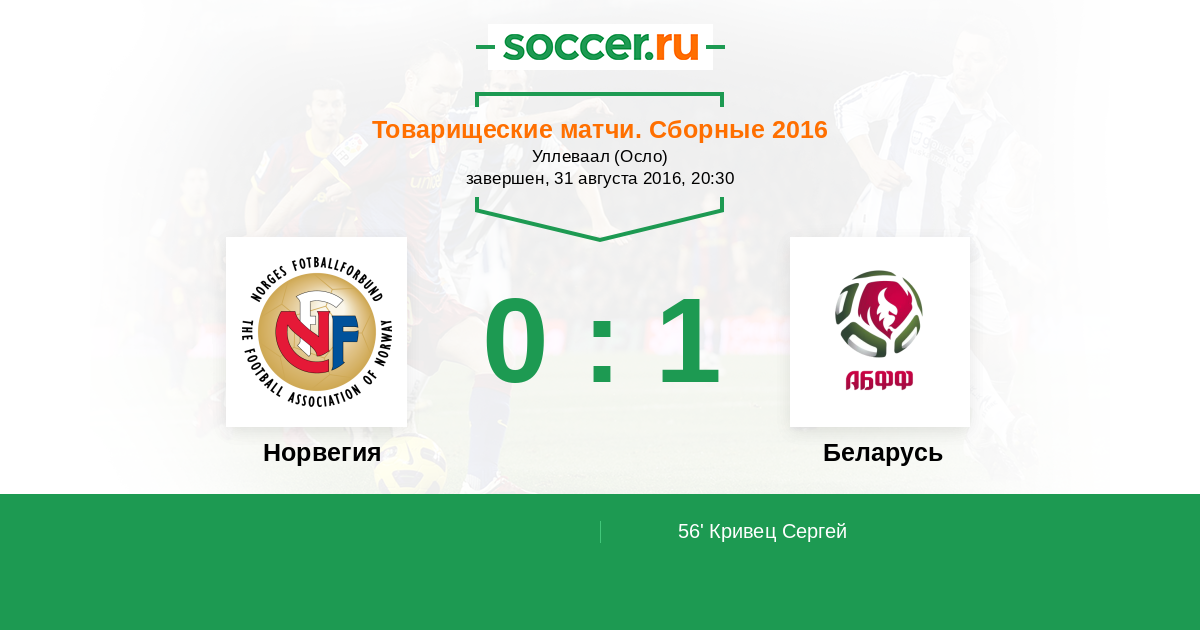 Протокол матча Норвегия против Беларусь