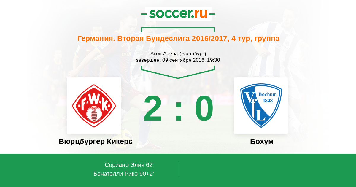Протокол матча Вюрцбургер Кикерс против Бохум