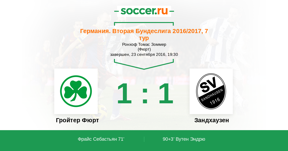 Протокол матча Гройтер Фюрт против Зандхаузен