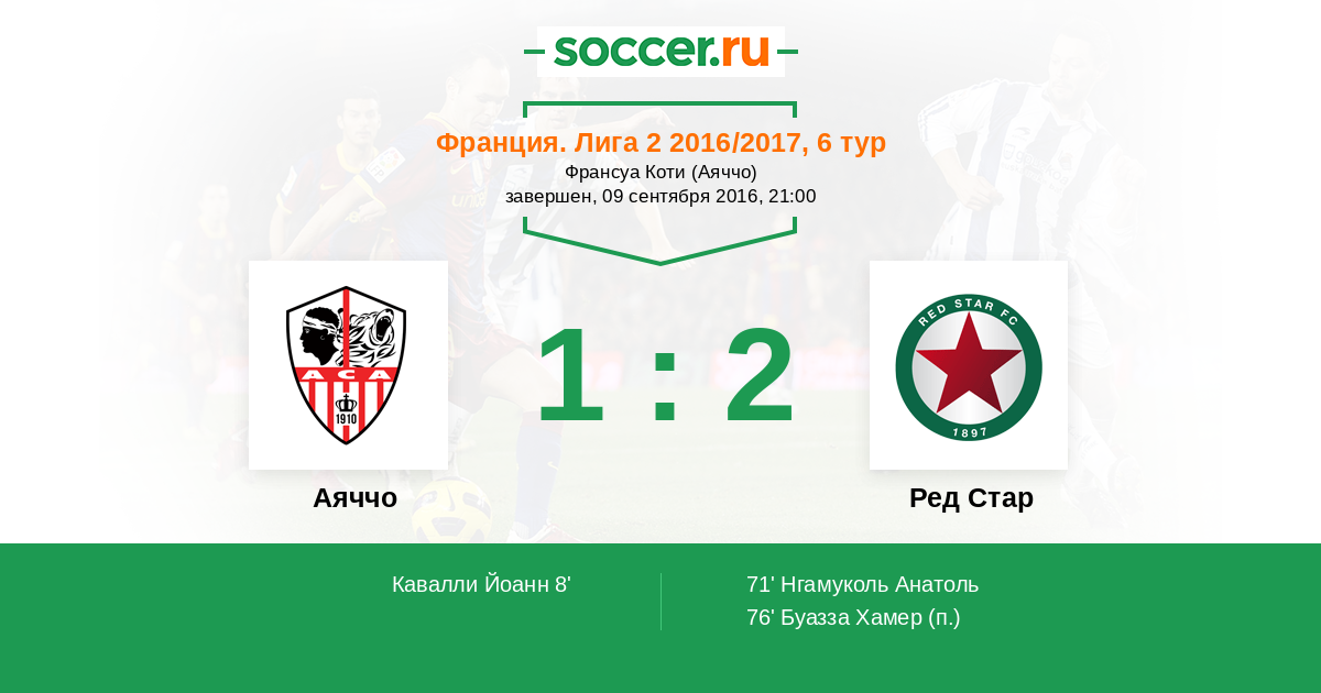 Протокол матча Аяччо против Ред Стар
