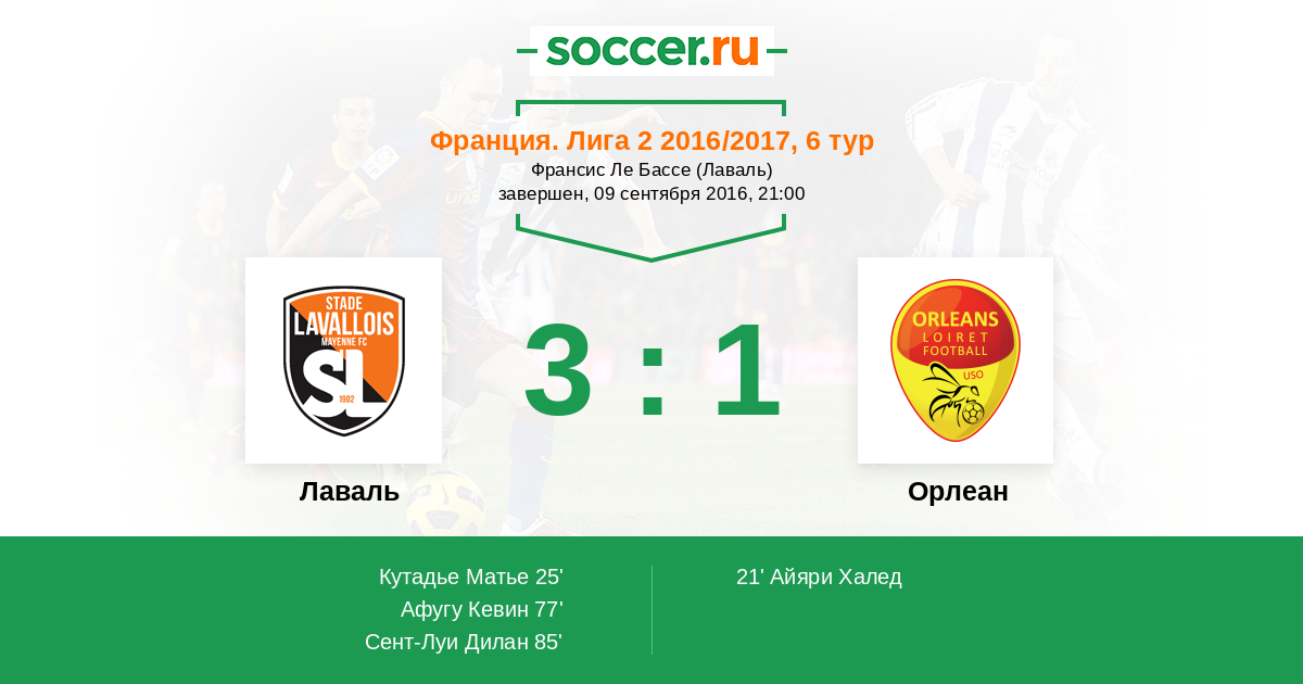 Протокол матча Лаваль против Орлеан
