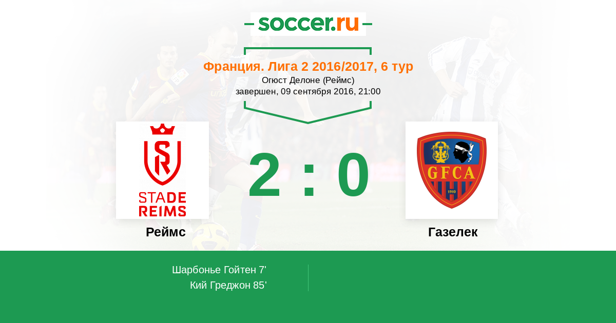 Протокол матча Реймс против Газелек