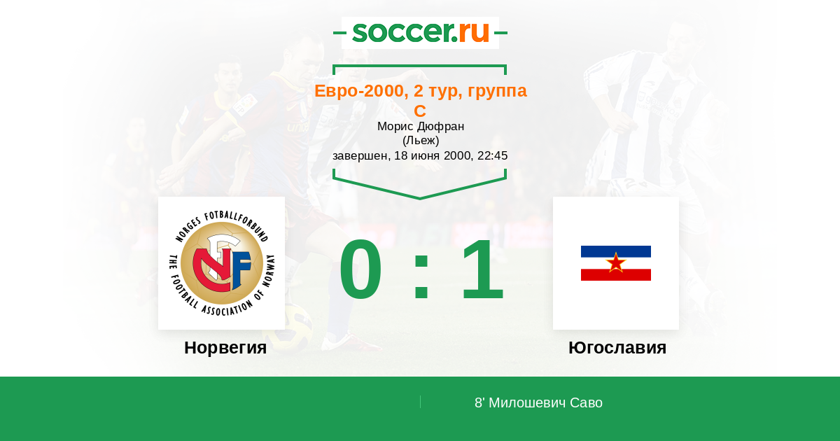 Протокол матча Норвегия против Югославия