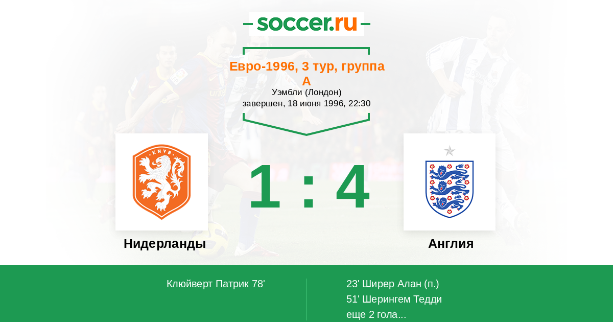 Протокол матча Нидерланды против Англия
