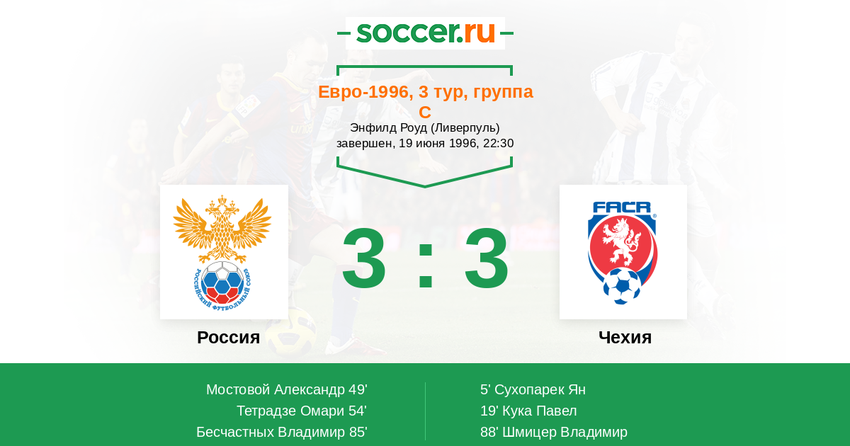 Протокол матча Россия против Чехия