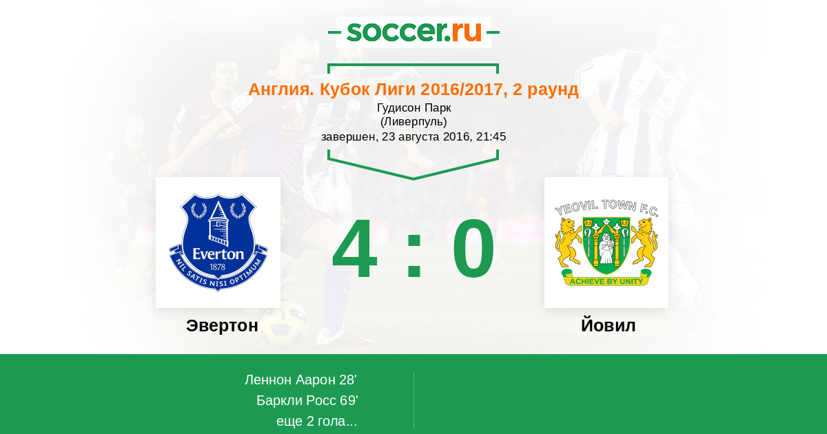 Протокол матча Эвертон против Йовил