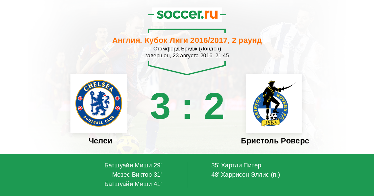 Протокол матча Челси против Бристоль Роверс