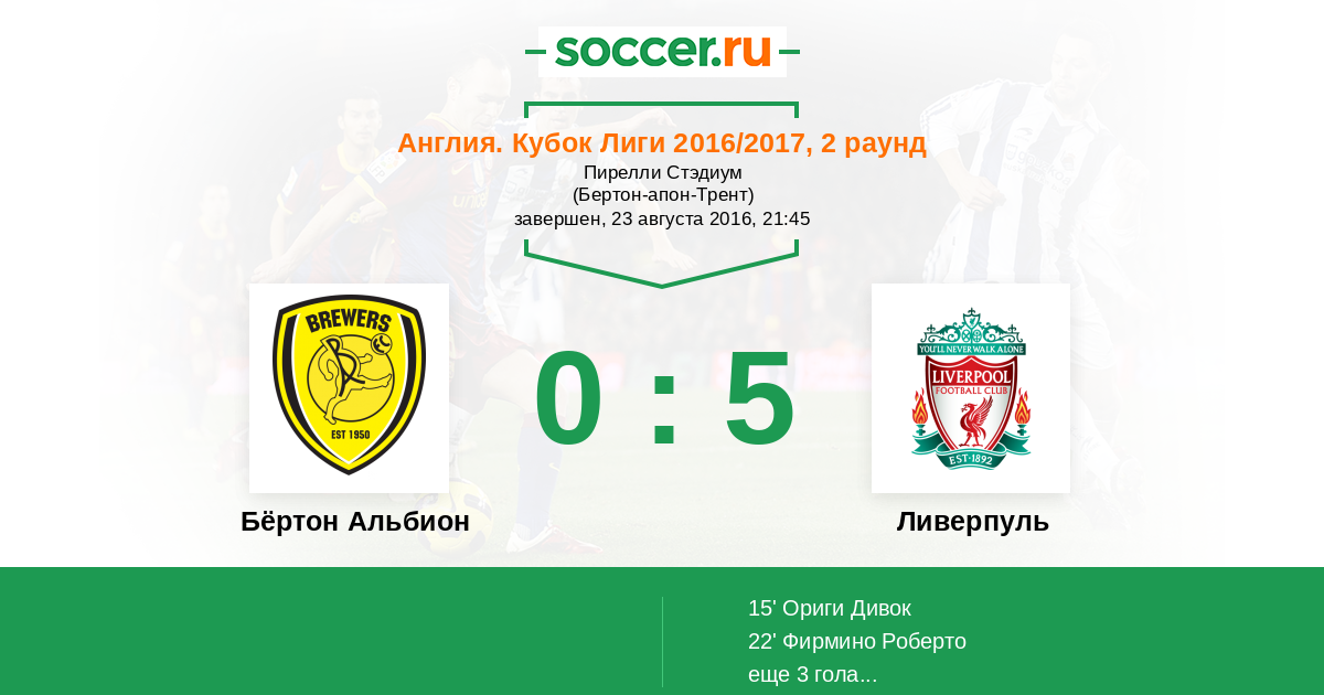 Протокол матча Бёртон Альбион против Ливерпуль
