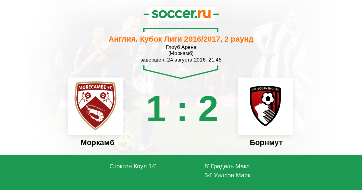 Протокол матча Моркамб против Борнмут