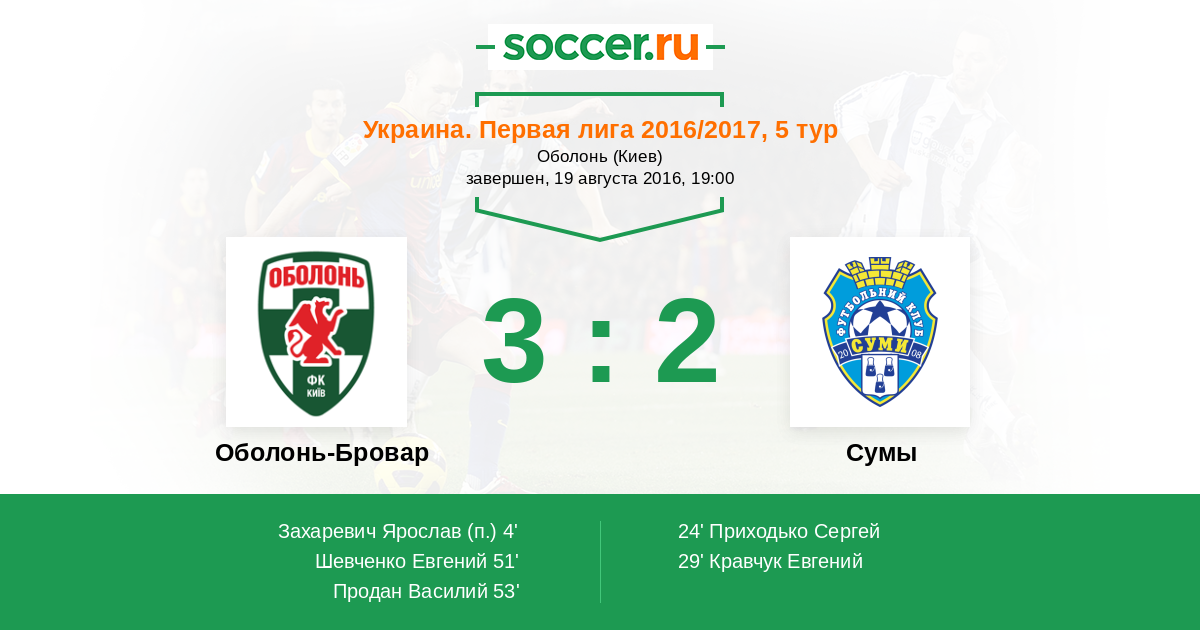 Протокол матча Оболонь-Бровар против Сумы