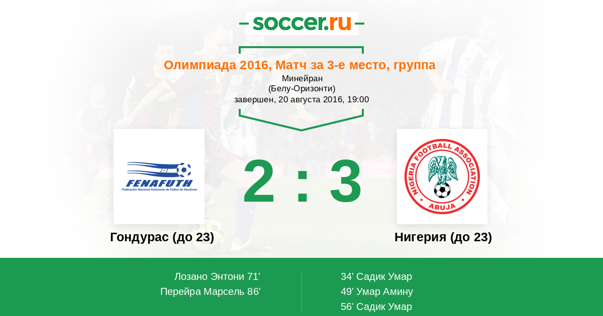 Протокол матча Гондурас (до 23) против Нигерия (до 23)