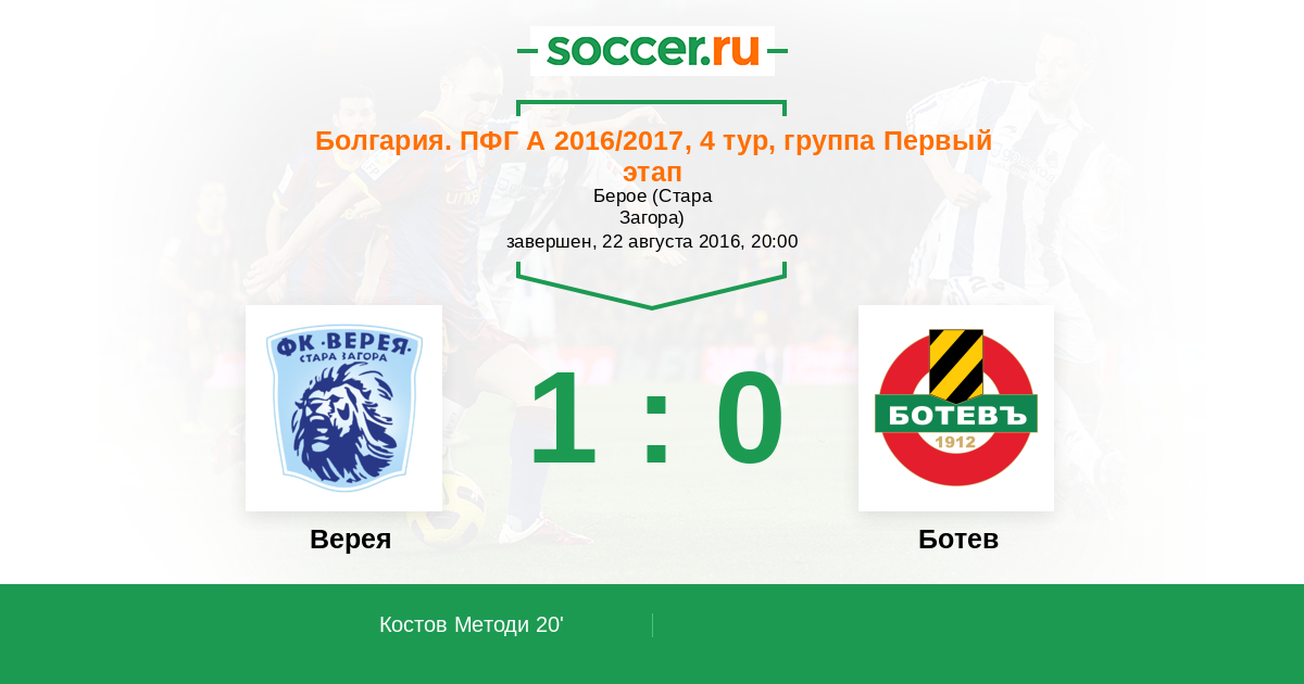 Протокол матча Верея против Ботев