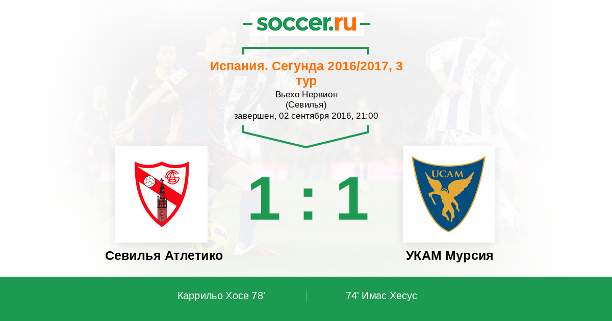 Протокол матча Севилья Атлетико против УКАМ Мурсия