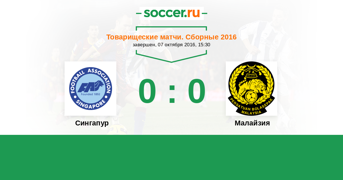 Товарищеские матчи. Сборные 12.06.2012 Малайзия Логотип Малайзия 2:0 Логотип Сингапур Сингапур