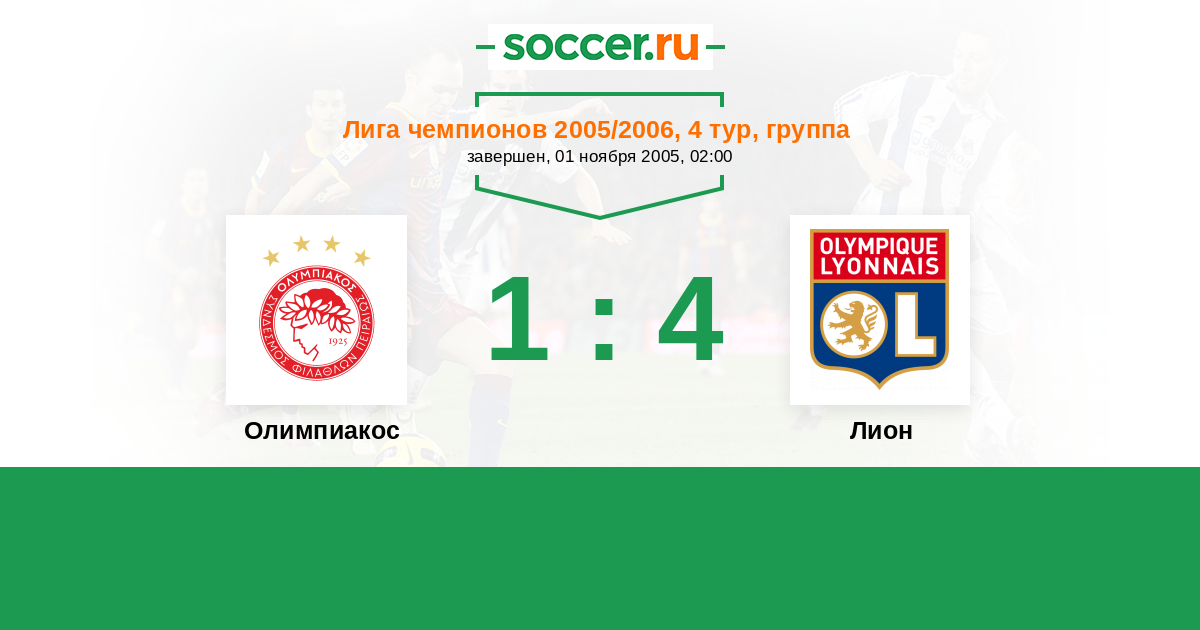 История матча Олимпиакос против Лион