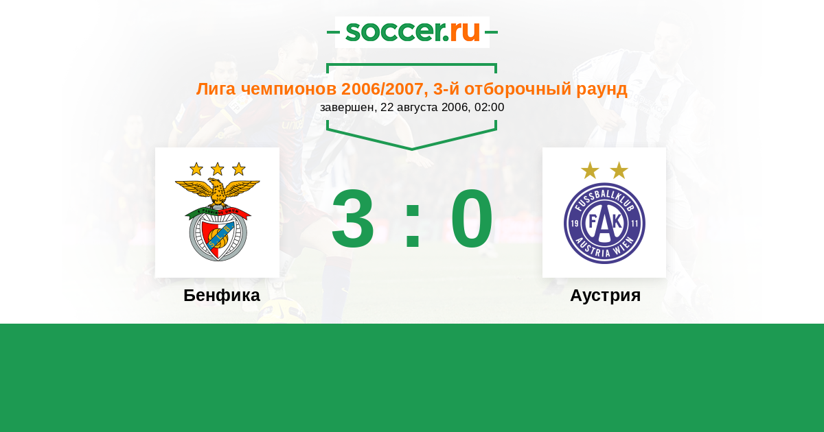 История матча Бенфика против Аустрия