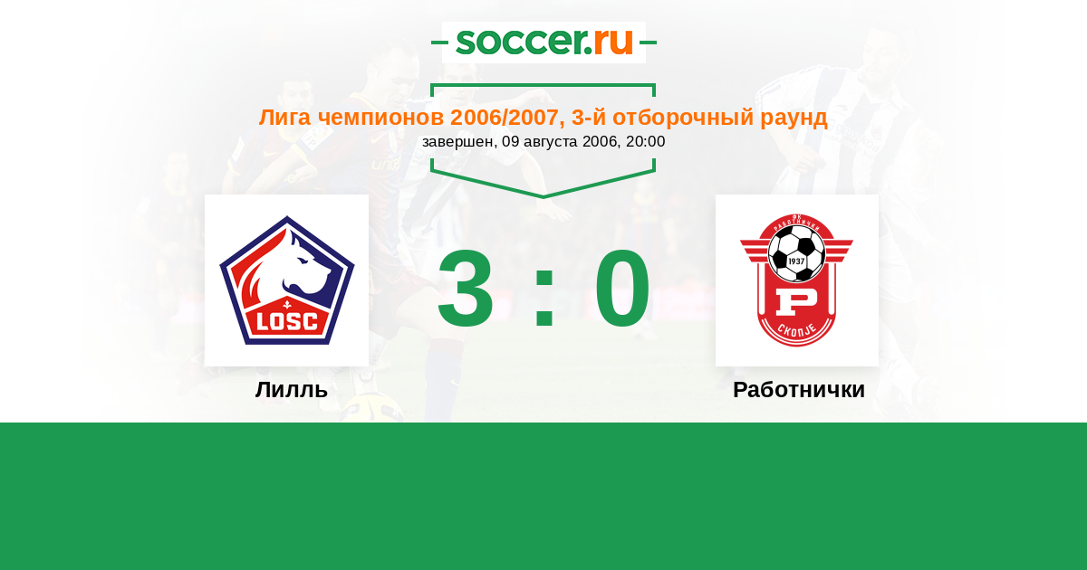 История матча Лилль против Работнички