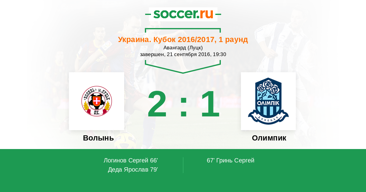 Протокол матча Волынь против Олимпик