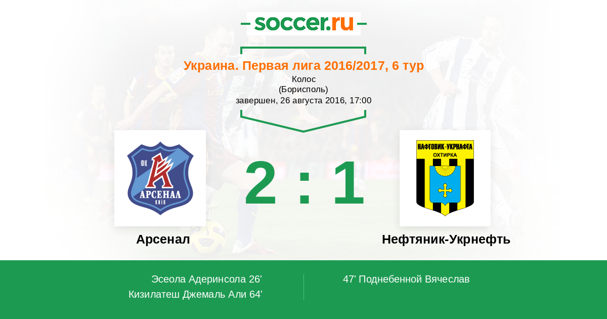 Протокол матча Арсенал против Нефтяник-Укрнефть