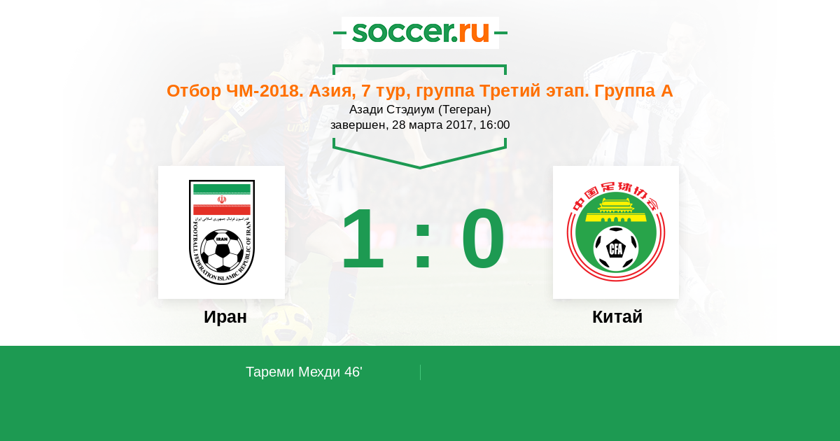 46' (1:0) Тареми Мехди (17) (Шоджаи Масуд (7))
