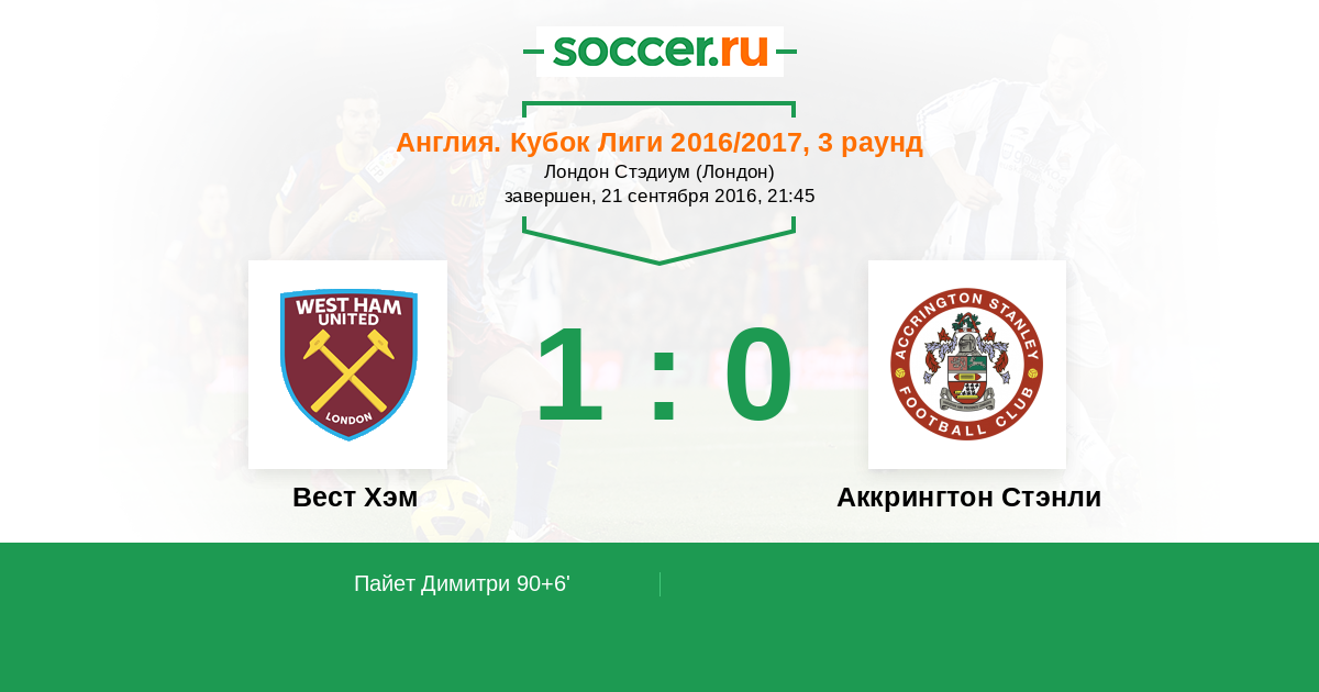 Протокол матча Вест Хэм против Аккрингтон Стэнли