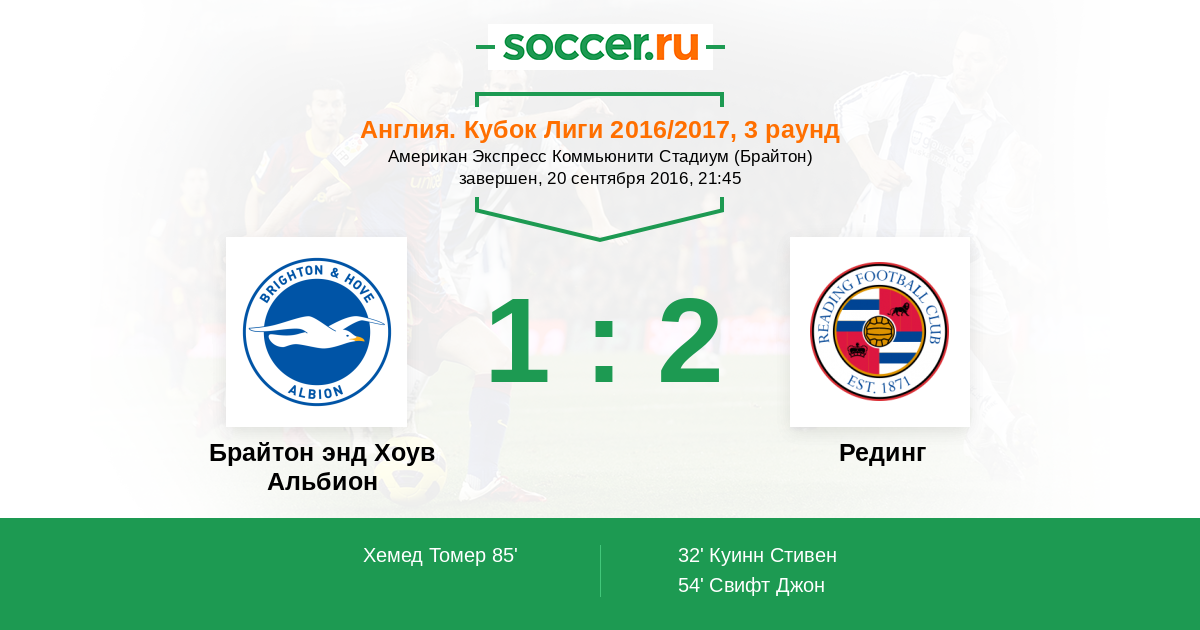 Протокол матча Брайтон энд Хоув Альбион против Рединг