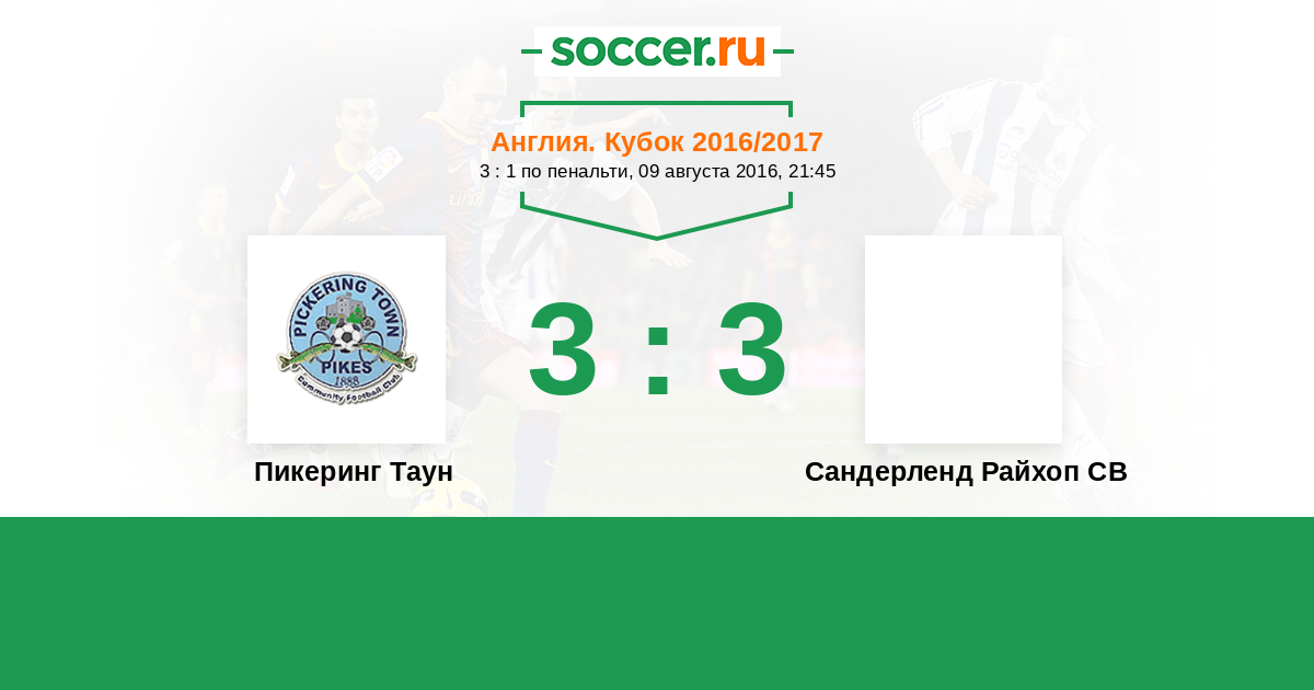 История матча Пикеринг Таун против Сандерленд Райхоп СВ